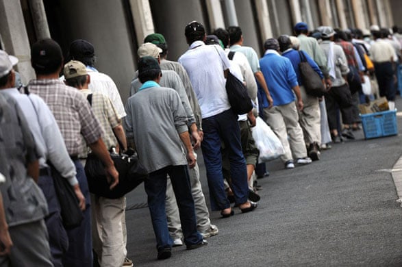 Unemployed People Line Up For Beds At Shelters Outside The Nishinari Stock Photo Alamy