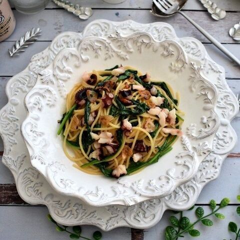 ルッコラとタコのスパゲッティ 牡蠣だし醤油風味 暮らしニスタ