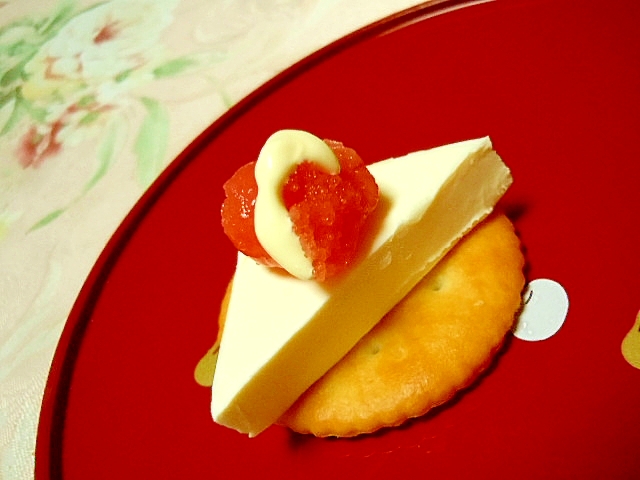リッツon 明太マヨとクリームチーズのカナッペ レシピ 作り方 By 小太郎1212 楽天レシピ
