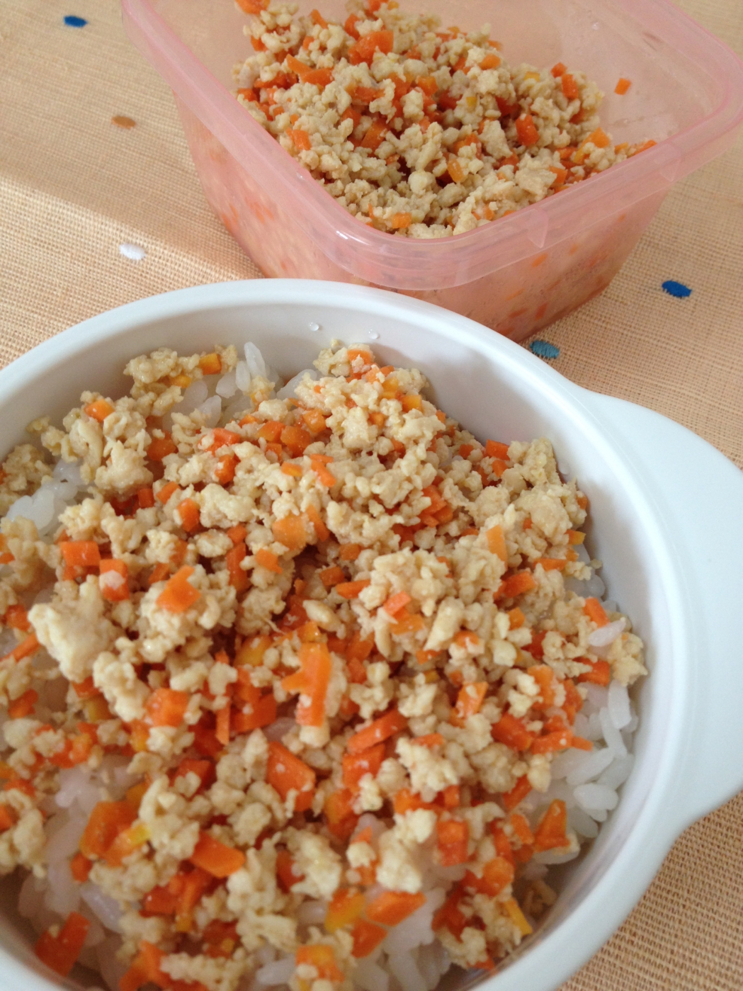 幼児食に 鶏とにんじんのそぼろ丼 レシピ 作り方 By Hana Mama 楽天レシピ