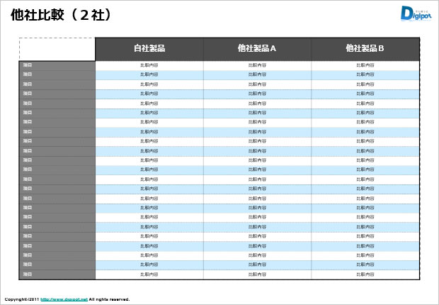 比較表のテンプレート パワーポイント フリー素材 無料素材のdigipot