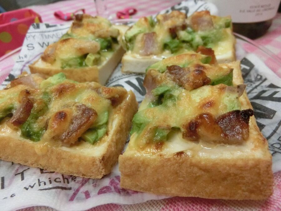 マヨ醤油ソースが合う アボカド ベーコン厚揚げピザ 花ぴーのあてレシピ