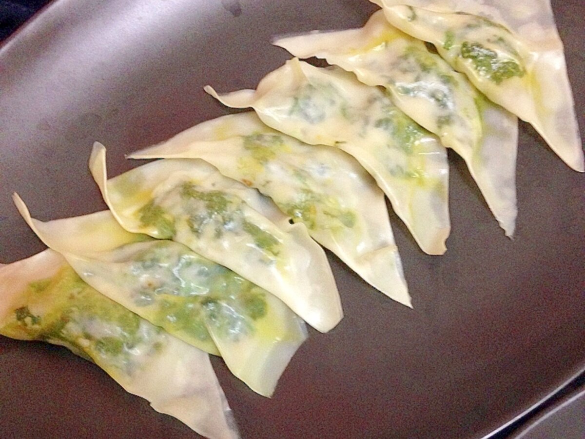 餃子の皮でちぢみほうれん草とモッツァレラのラビオリ きなこ Snapdish スナップディッシュ Id Uvv4ca