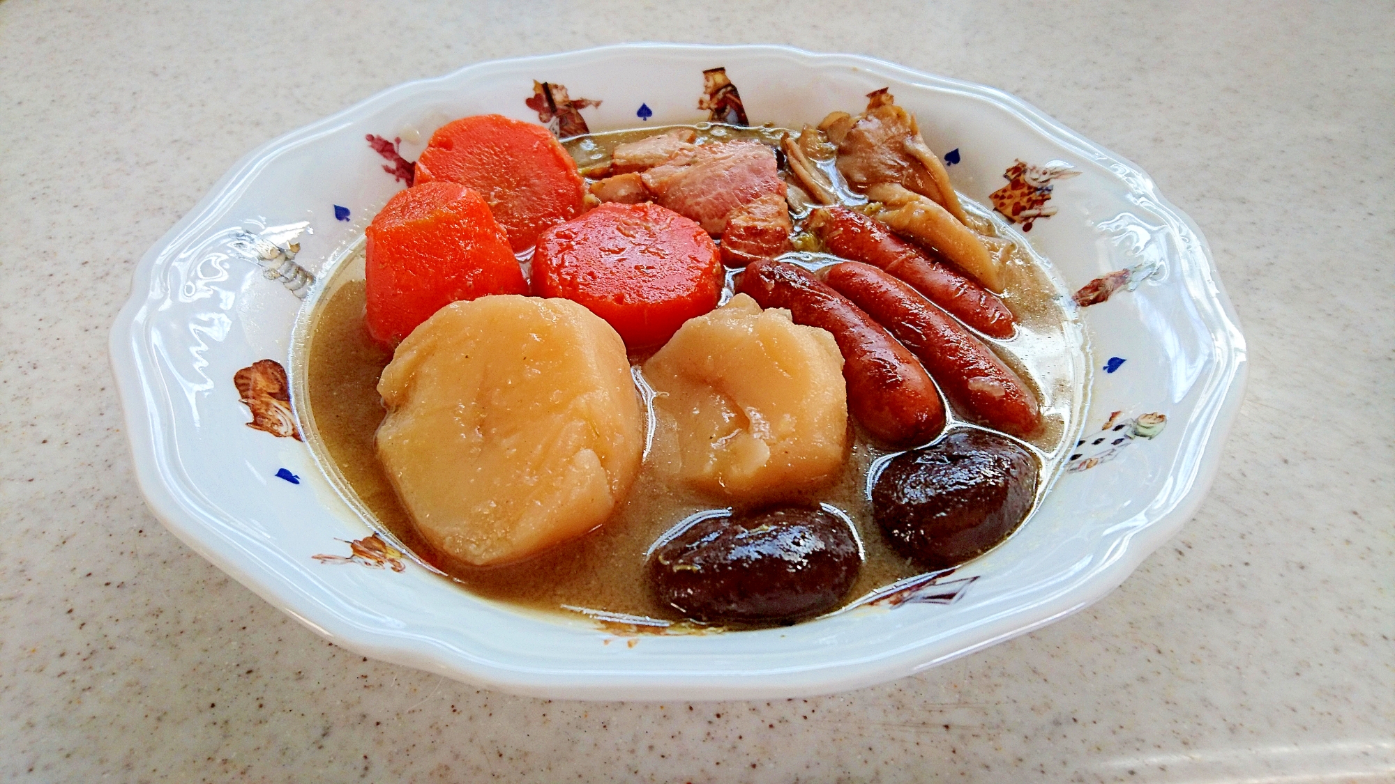 鶏肉とウインナーの肉じゃがポトフ風 5万9 003億回死ねる おっさんひとりめし